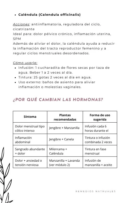 Aprenderás a usar plantas medicinales, tinturas, infusiones y aceites esenciales según cada fase de tu ciclo para aliviar el dolor, el SPM, la hinchazón, el acné hormonal y mucho más.